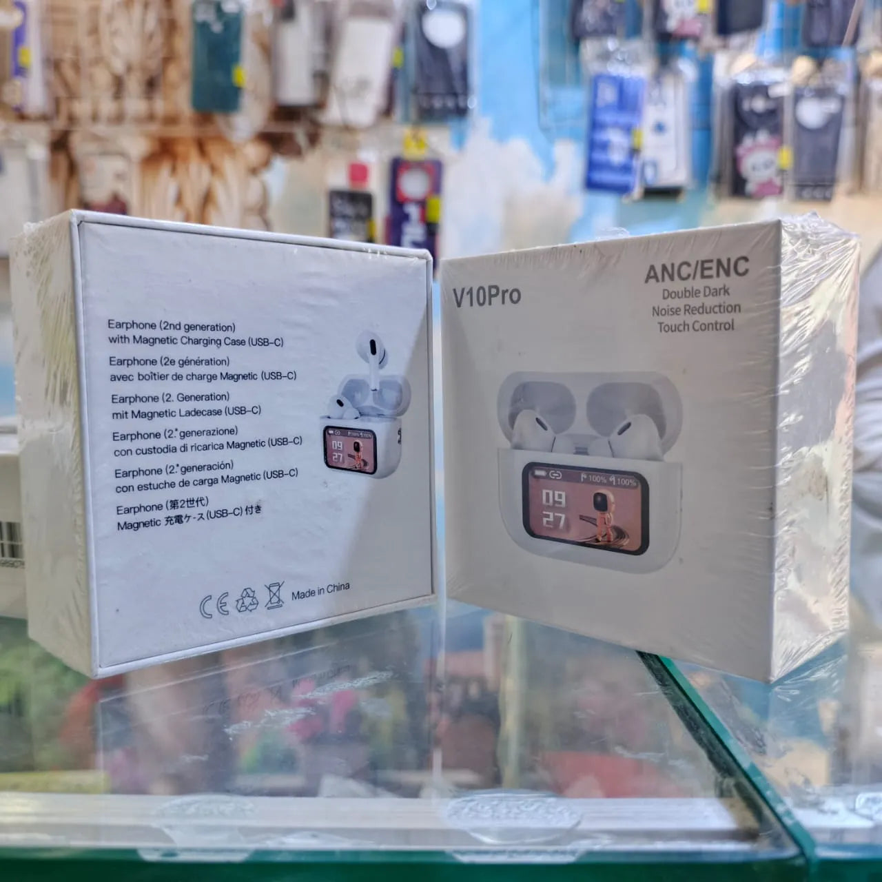 Experience next-level sound with the V10Pro Wireless Earbuds (2nd Generation) β designed for comfort, style, and performance. Equipped with Active Noise Cancellation (ANC) and Environmental Noise Cancellation (ENC), these earbuds deliver crystal-clear sound whether youβre listening to music, watching movies, or taking calls.